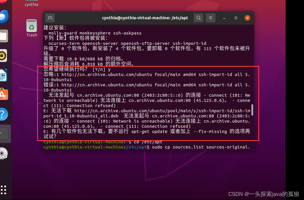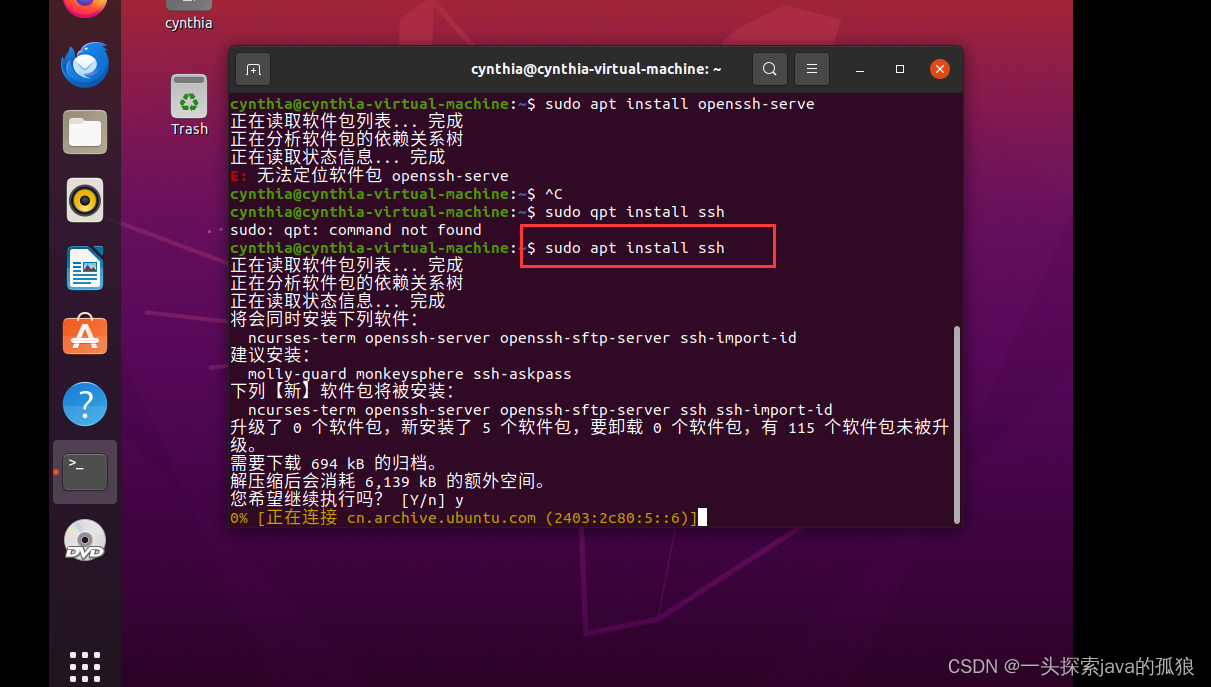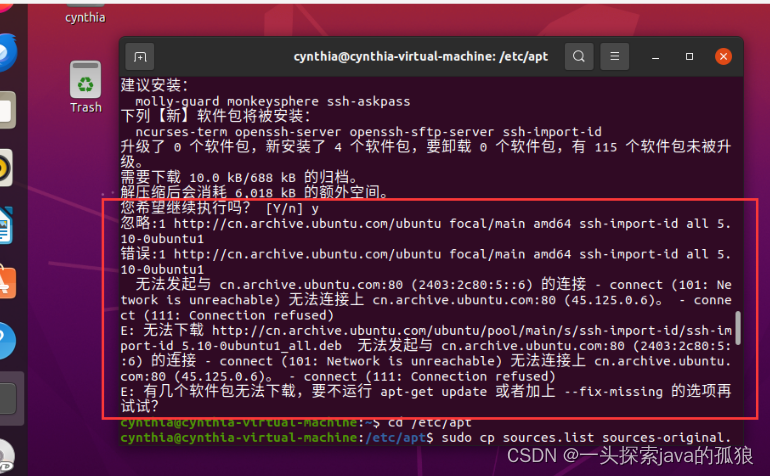 复制代码 第五步:不管第四步如果,操作完之后输入 sudo apt-get install openssh-server 就能下载乐成了
