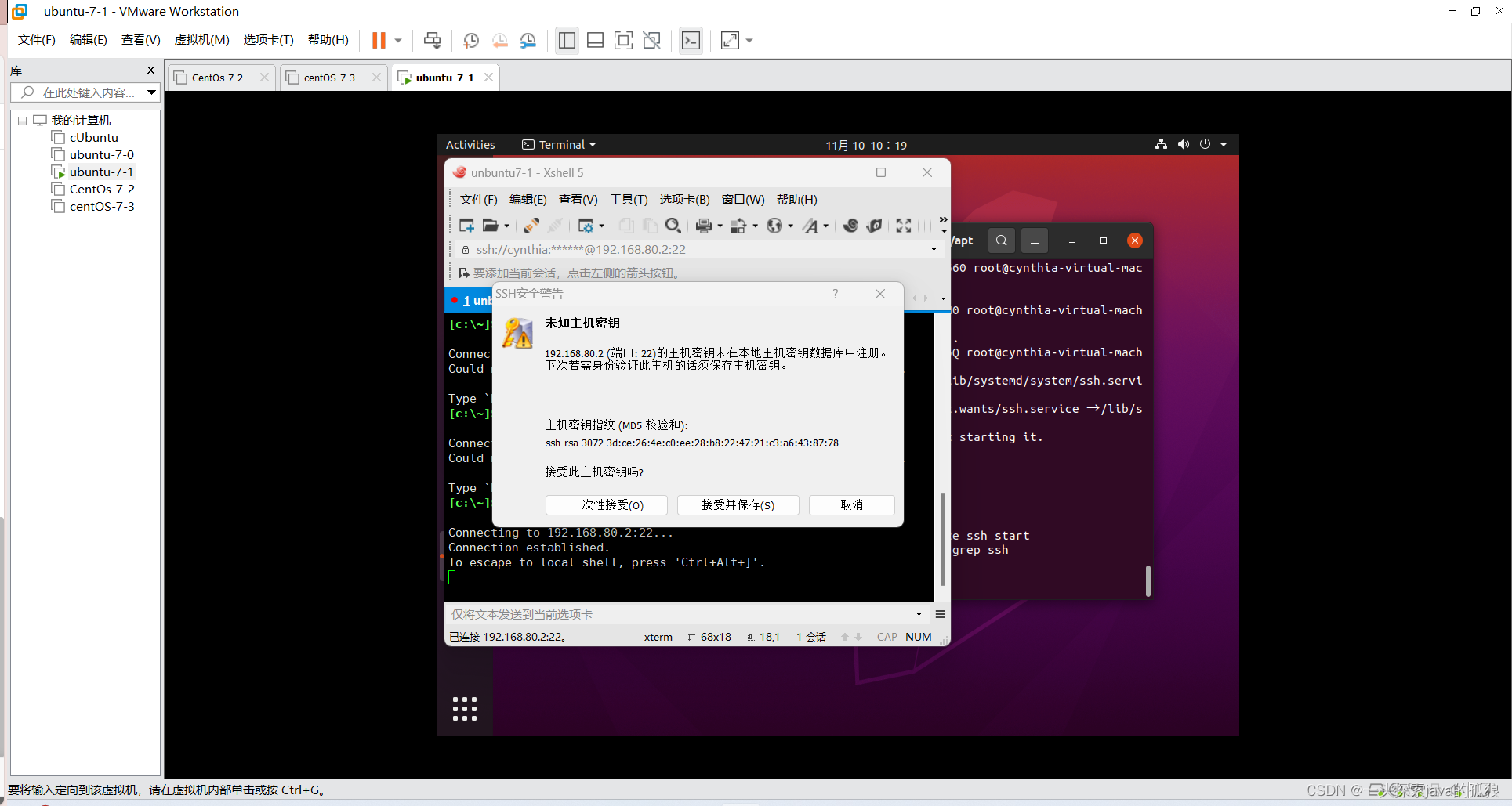 目前就处于 ip可以ping通,但是xshell毗连失败。