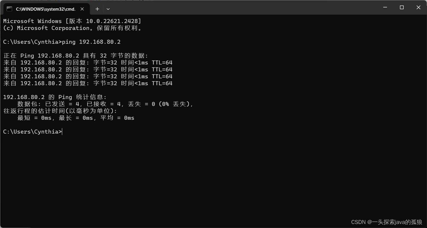 本地体系可以先使用win+r并输入cmd调出windows下令窗口,如果能够ping通192.168.80.2说明已经可以毗连了。