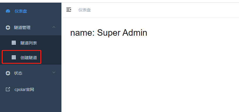 注册完后,登录cpolar的客户端,(可以在浏览器中输入localhost:8088直接访问,也可以在开始菜单中点击cpolar客户端的快捷方式),点击客户端主界面左侧隧道管理——创建隧道按钮,进入本地隧道创建页面