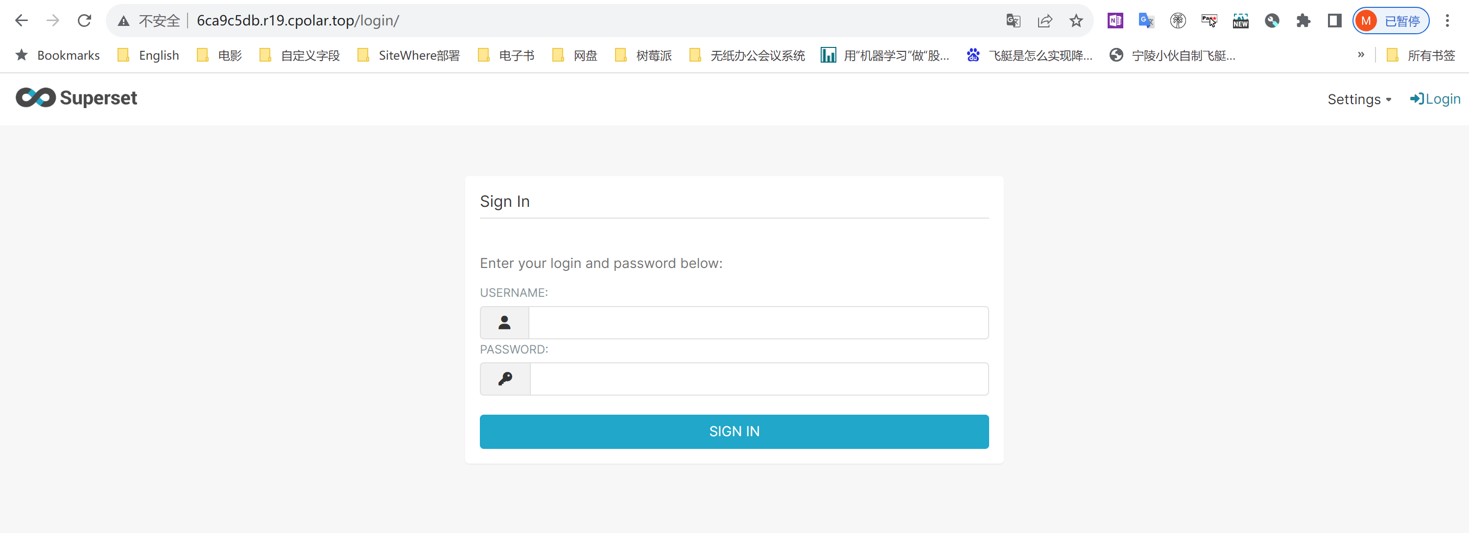 粘贴公网所在到浏览器后,显示公网访问公司的内网superset登录界面,登录后实现公网访问内网。
