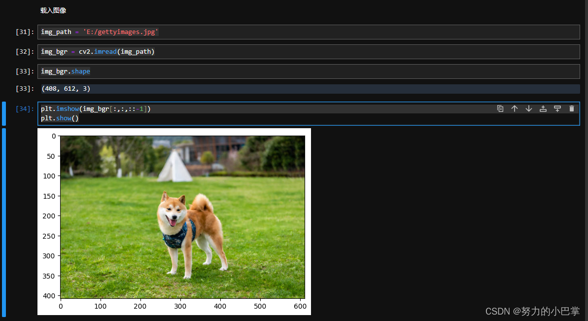 `plt.imshow(img_bgr[:,:,::-1])` 的部分是为了在matplotlib中正确显示通过OpenCV读取的图像。