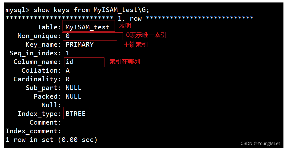 - 第一种方法: show keys from 表名;