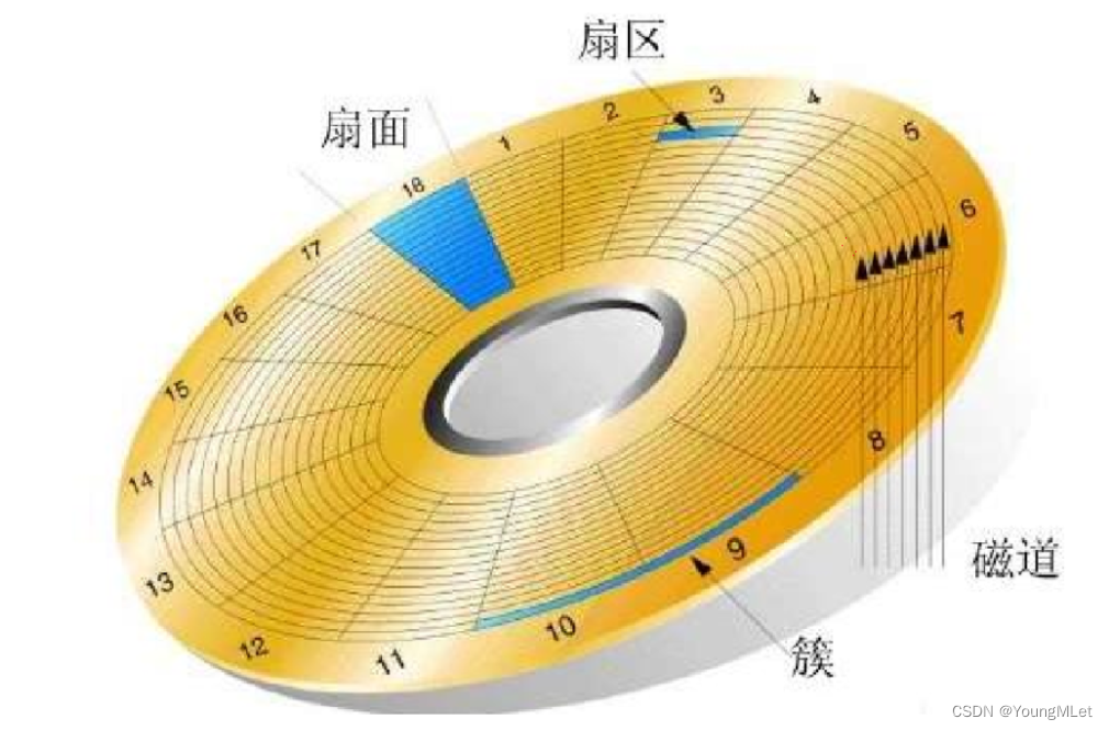 我们先熟悉一下磁盘的盘片布局: