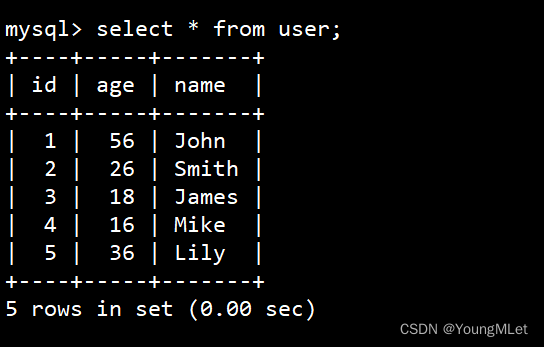 - create table user3(id int, name varchar(30));