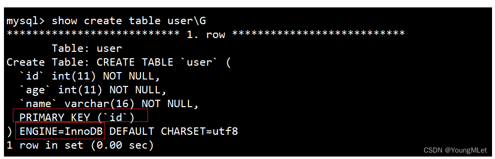 复制代码 一定要给 id 加上主键,只有如许才会默认生成主键索引;然后我们看看表的布局: