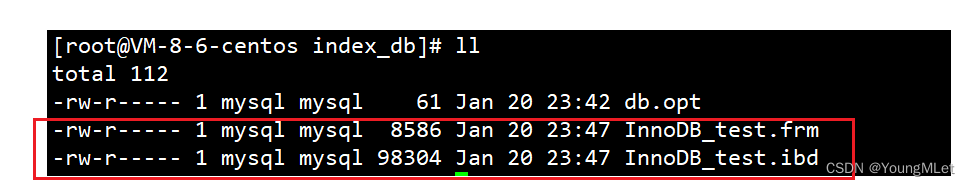 因为 mysql 默认使用的是 InnoDB 引擎,以是我们不需要带使用哪个引擎的项。接下来检察该目录下的文件: