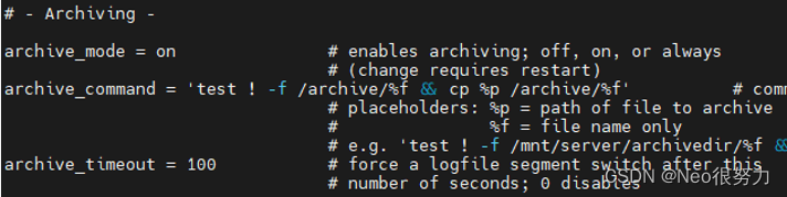 之间将有一个很长的延迟。为了限定未归档数据存在的时间,可以设置archive_timeout来强制
