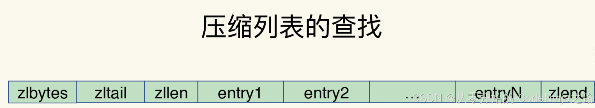 压缩列表类似于一个数组,不同之处在于表头有三个字段 zlbytes、zltail 和 zllen,分别表现列表长度、列表尾的偏移量和列表中的 entry 个数,压缩列表在表尾另有一个 zlend,表现列表结束。