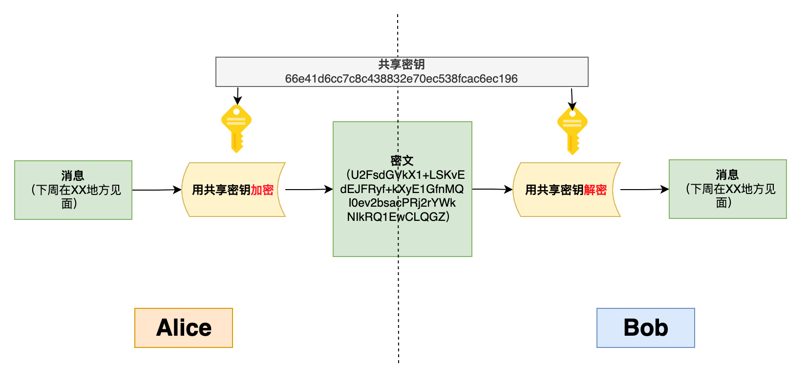 为了让以下讲解更容易被大家明白,我们假设有如了局景:Alice在网上认识了Bob,现在Alice想给Bob发一封邮件,Alice不想让别人知道邮件的内容,以是她接纳了对称密码算法。