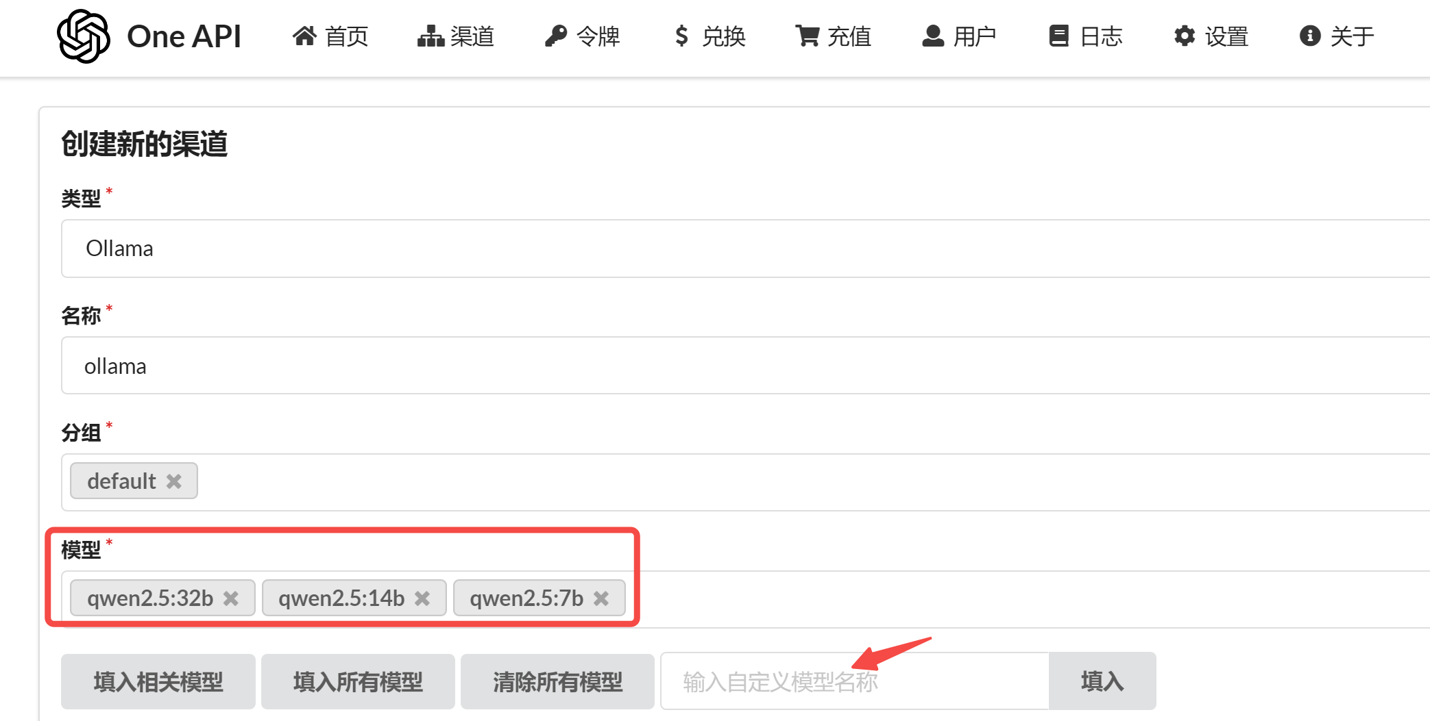 新建一个渠道,把我们刚部署的三个模型接进来:
