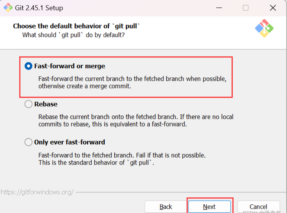 - 第一个是默认值,这是“git pu”的标准行为:尽可能将当前分支快速转发到获取的分支,否则创建归并提交