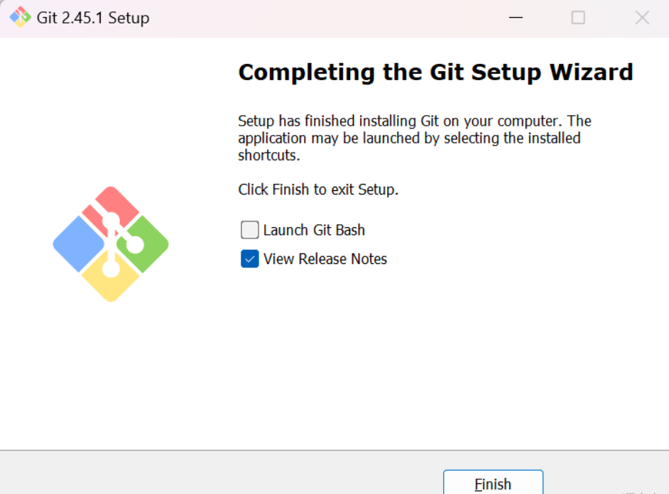 点击finish安装完成,可以取消勾选,第二个是查看Git发行的,不取消勾选会在浏览器跳转
