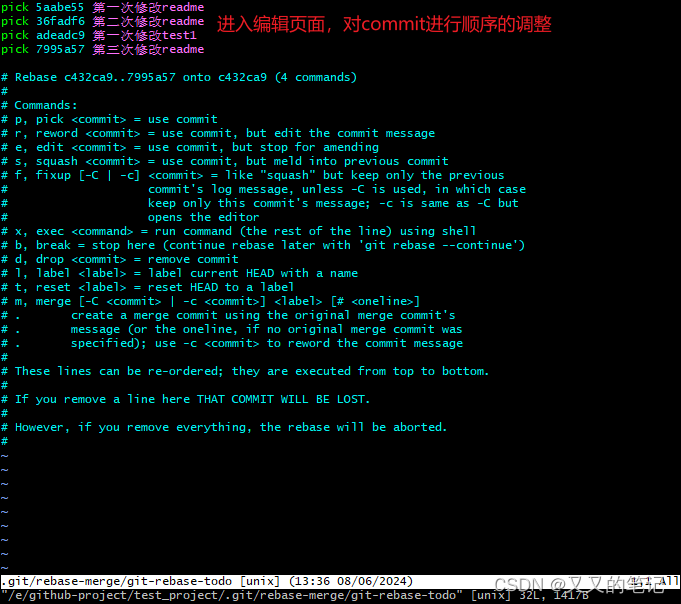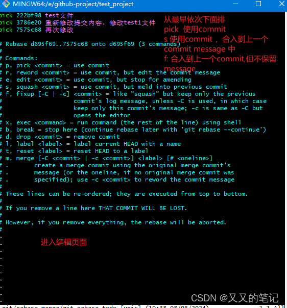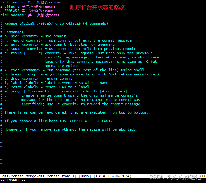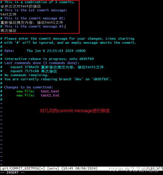 步骤3:进入插入模式(顺序和message的编辑)