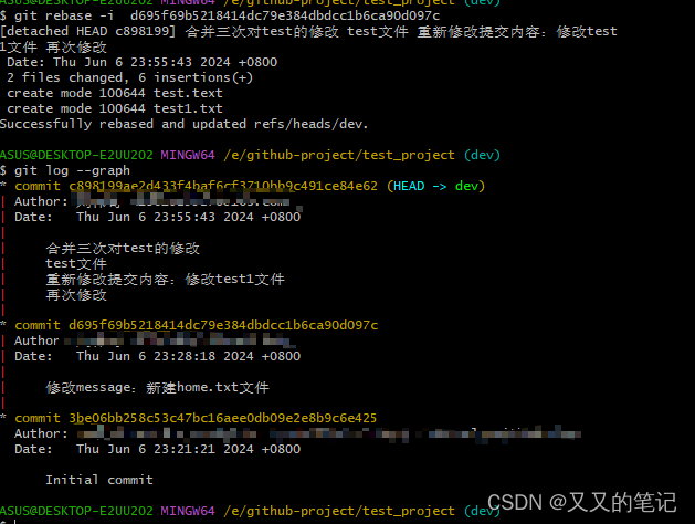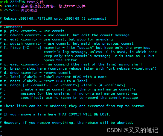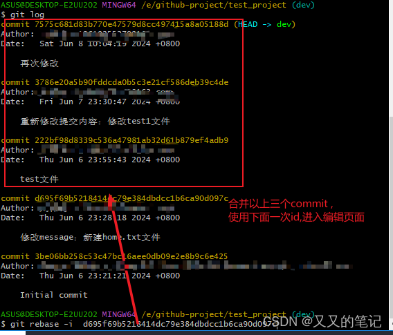 2、整合不连续的commit 成一个