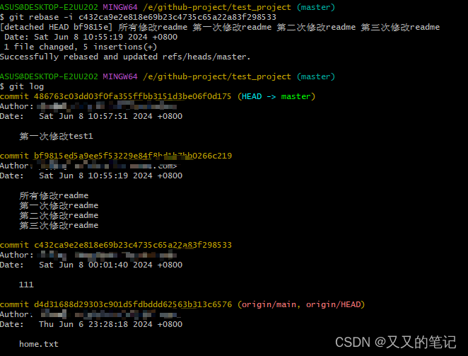 末了使用git push --force举行提交