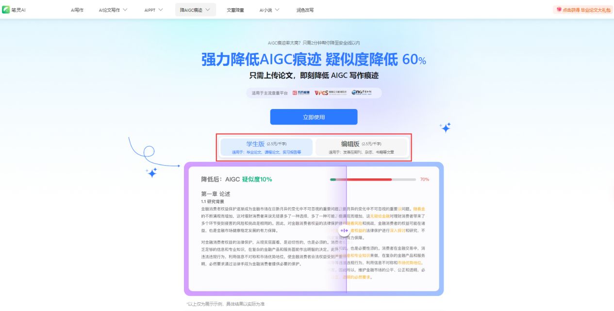 笔灵AI工具以其良好的能力显著减少AI生成内容(AIGC)的可辨认特性,能够将疑似抄袭的比例减少高达60%,确保作品在主流的查重体系中