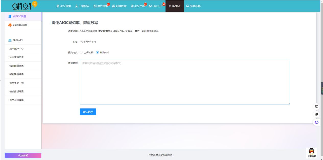 操作简单易上手,只必要上传论文或粘贴文本,即可对文本降低AIGC写作痕迹。