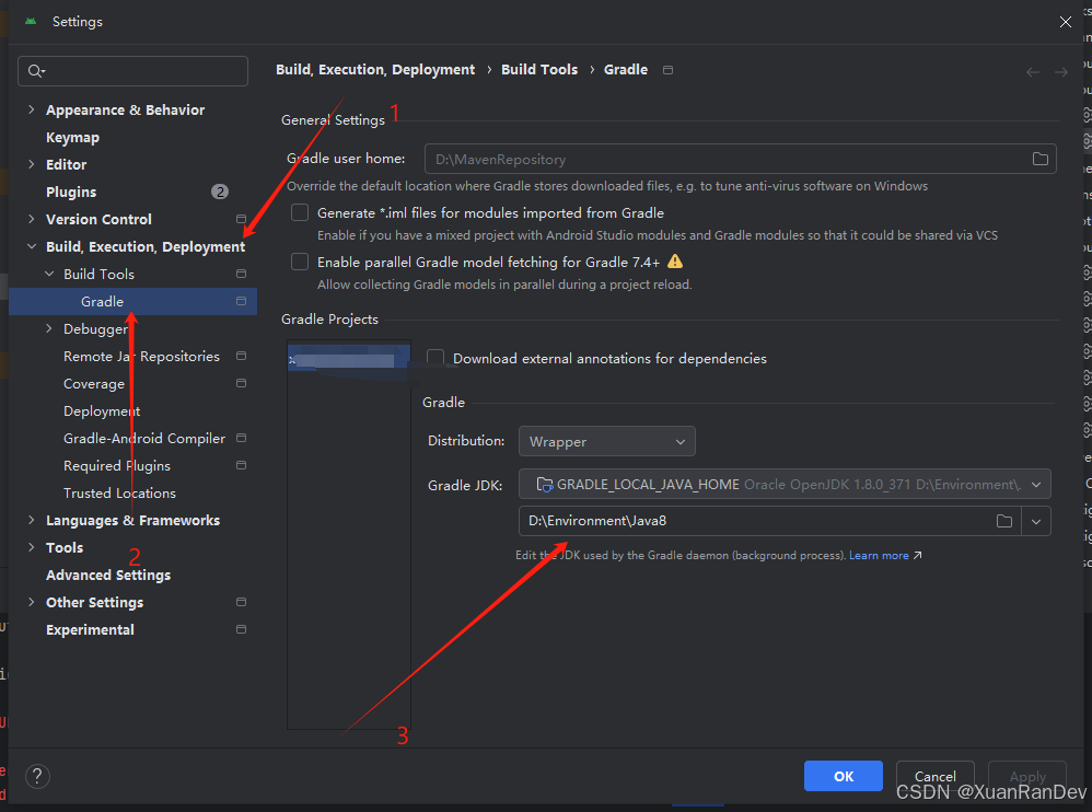 有些小伙伴大概在修改过程中没有看到Gradle JDK选项,那是因为你的Android Studio版本不同,设置路径略有差异。可以通过查找相关设置项大概参考官网文档来办理这个标题。
